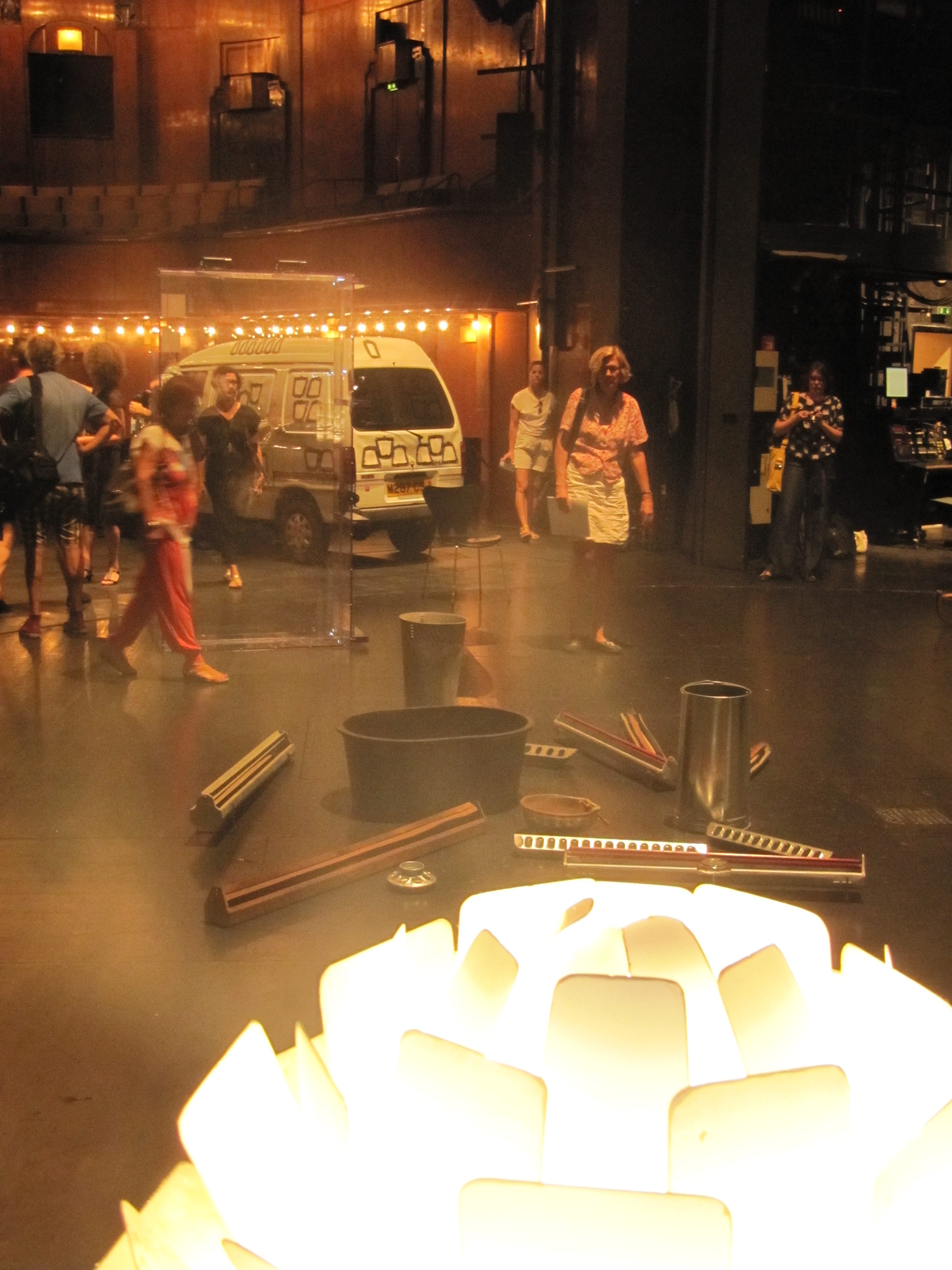 Die Bühne wirkt, als hätte das Ensemble kurz vorher die Bühne verlassen. Ein Stuhl, mehrere kunstvoll angerichtete Bücher, ein Diaprojektor, Starkstromkabel oder auch Uhren hinterlassen undefinierte Kunstmomente. Im Zuschauerraum steht „Bouqet V“, ein Blumenstrauß aus 95 verschiedenen Blüten, mit dem Willem Rooij „Die Schönheit des Jugendstiltheaters feiert“, dem Raum gratuliert, den zweiten Weltkrieg unbeschadet überlebt zu haben. Der Zuschauer steht währenddessen auf der Bühne.
